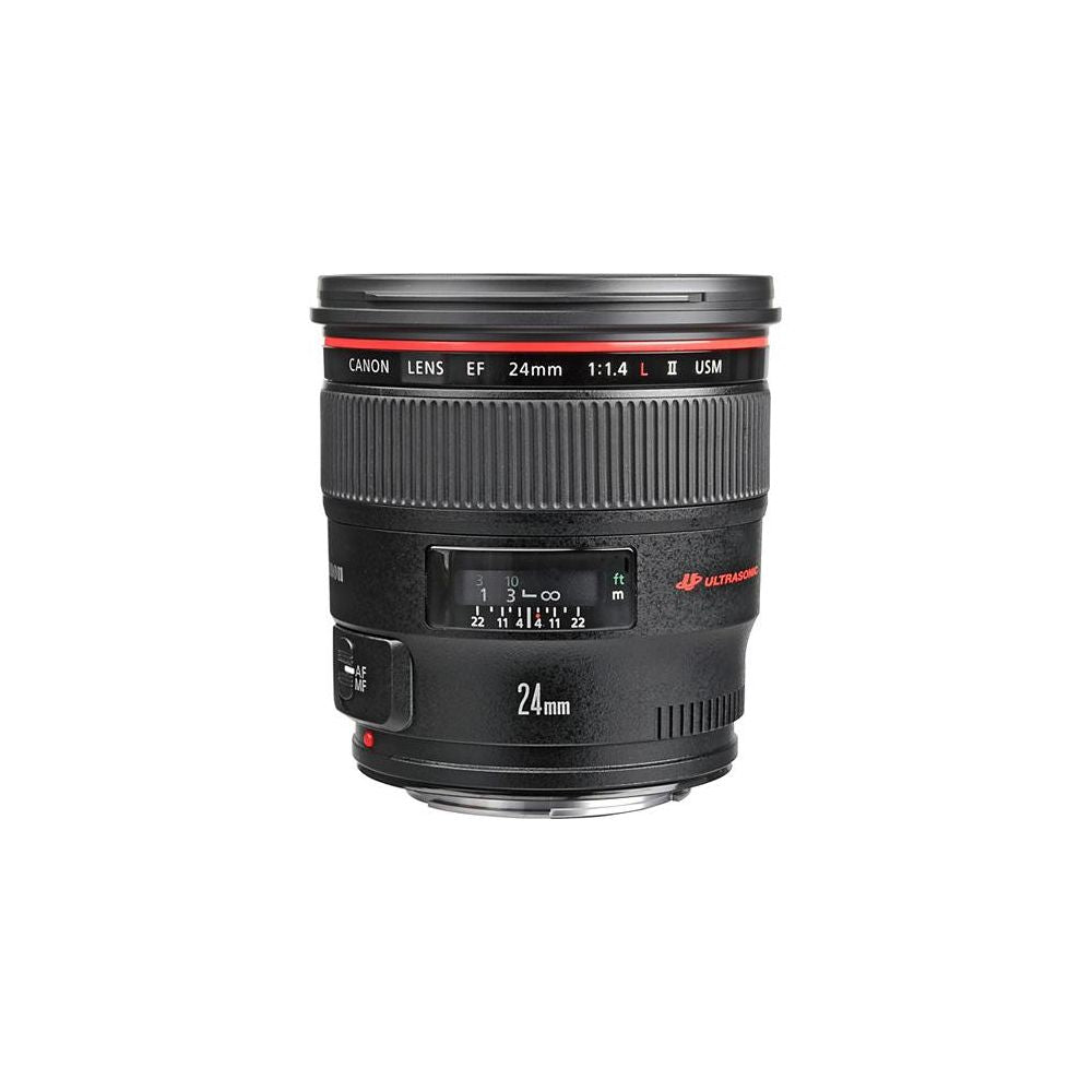 Canon's newest fixed length L-series lens, the EF 24mm f/1.4L II USM, incorporates the newest in Canon lens technology for spectacular sharpness and impressive performance at all settings. It features two high-precision, large-diameter aspherical lenses for sharpness across the sensor, even in peripheral areas of full-frame sensors. Lens elements have a newly-designed anti-reflective SWC (Sub Wavelength Coating) that departs from conventional coatings by using an extremely fine structure that minimizes ghosting and flaring across the lens surface, regardless of the angle with which light enters or exits.