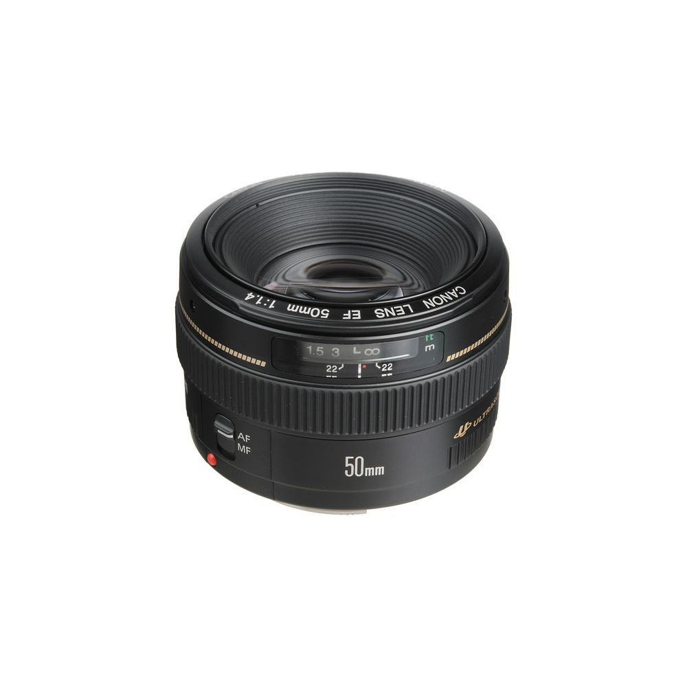 This EF 50mm f/1.4 USM Lens from Canon is a standard length lens featuring superb quality and portability. Its f/1.4 maximum aperture makes it very effective in low light situations and able to provide shallow depth of field focus. Two high-refraction lens elements and new Gaussian optics eliminate astigmatism and suppress astigmatic difference. Its ultrasonic autofocus motor (USM) enables fast, smooth and silent autofocus action and full-time manual focus override allows for the precision of manual focus even in One Shot AF mode.