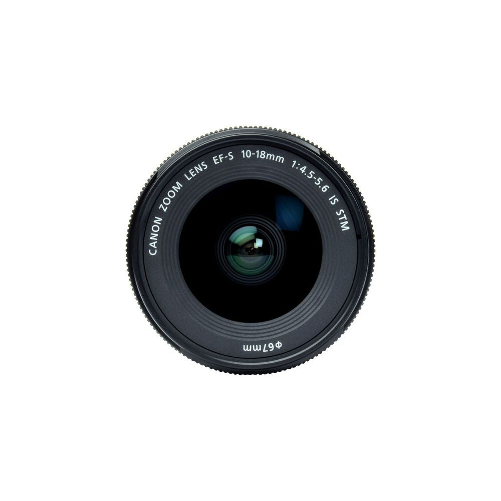 The Canon EF-S 10-18mm f/4.5-5.6 IS STM Lens is a wide-angle zoom lens designed specifically for EOS APS-C DSLRs, where it provides a 35mm-equivalent focal length range of 16-28.8mm. The optical design incorporates one aspherical element, one UD (Ultra-low dispersion) element, and one large-diameter element to minimize chromatic aberrations throughout the zoom range and contribute to notable image sharpness and clarity. Enhanced lens coatings have also been applied to lens elements to minimize lens flare and ghosting for maintained image contrast and color neutrality.