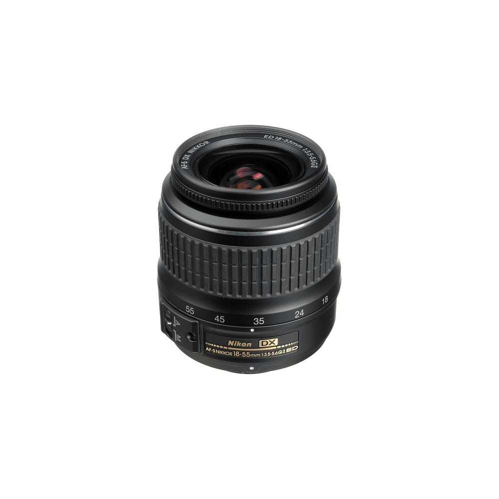 Nikon AF-S DX Zoom-Nikkor 18-55mm f/3.5-5.6G ED II Weighing just 7.2 oz., this light and compact standard zoom lens produces clear, high-contrast pictures and videos. Its approx. 3.1x zoom covers the popular range of 18-55mm, making it a versatile, go-to lens for everything from portraiture to landscapes. It even lets you shoot close-ups just 0.9-ft. from your subject.The AF-S DX Zoom-NIKKOR 18-55mm f/3.5-5.6G ED II Lens from Nikon is a compact, lightweight standard zoom lens that has a 3.1x zoom range and is compatible with DX format Nikon DSLR