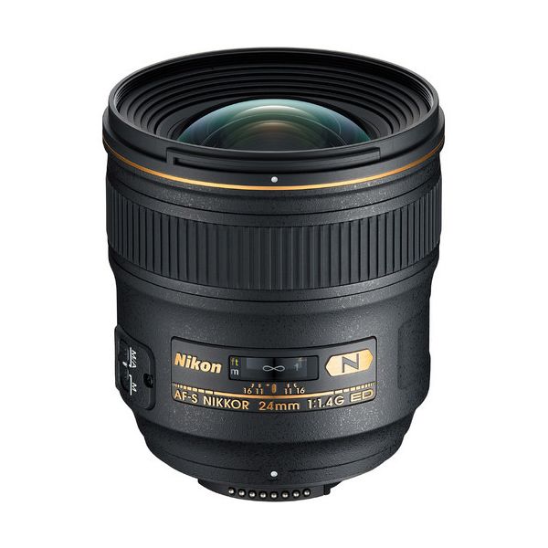 Nikon AF-S NIKKOR 24mm f/1.4G ED Wide Angle Lens Compelling wide-angle perspective combined with an ultra-fast f/1.4 aperture serves the needs of demanding professionals in exacting conditions. Offers superior sharpness and color correction by effectively minimizing chromatic aberration, even at the widest aperture settings.