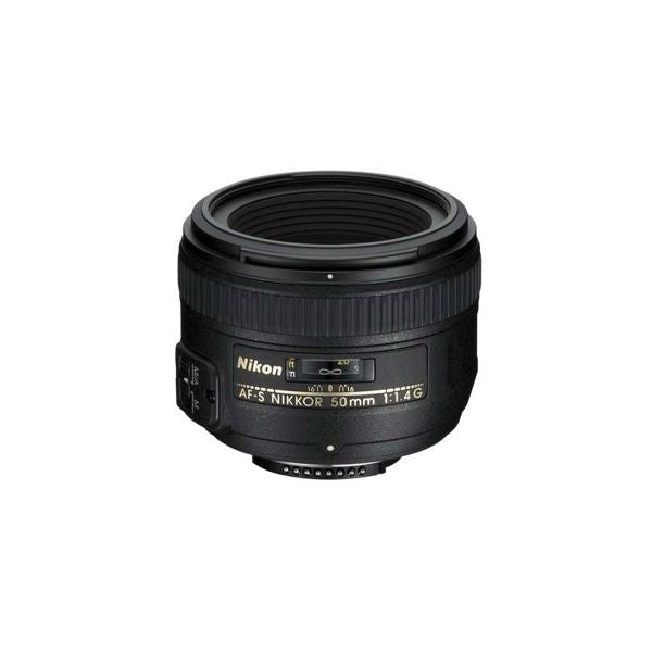 Nikon AF-S Nikkor 50mm f/1.4G Autofocus Lens ideal for travel, event, environmental and general photography in a wide variety of conditions, with superb optical formula with an ultra-fast f/1.4 maximum apertureFast f/1.4 prime NIKKOR lens - Perfect for low-light conditions, portrait and travel photographyNormal angle of view on FX-format cameras - Classic, normal angle of view when used on a Nikon FX-format digital SLR or 35mmfilm cameraIdeal portrait lens on DX-format cameras - An ideal portrait lens when used on a Nikon DX-format digital SLR, approximatingthe angle of view similarto that of a 75mm lens on a Nikon FX-format digital SLR or a 35mm film cameraExclusive Nikon Silent Wave Motor (SWM) - Enables fast, accurate, and quiet autofocusClose focusing to 1.5 feet - For extended versatility Rounded 9-blade diaphragm - Renders more natural appearance of out-of-focus image elements